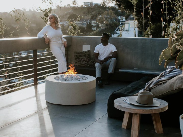 The Belmont is our only fire feature with a cylindrical design, giving it a unique and dimensional presence. Its 36-inch form personality was designed to complement any outdoor space, from cozy and intimate to grand and open.