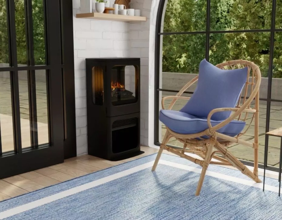 The Dimplex Optimyst Mapleton is a versatile freestanding stove that brings warmth and ambient flames to any room. Its innovative Optimyst technology creates realistic 3D flames using water vapor. The sleek black design with cast iron door and top panel complements both modern and traditional interiors. With two heat settings and an easy-fill water tank offering up to 8 hours of operation, the Optimyst Mapleton delivers both comfort and convenience. Adding this fireplace to any room is effortless – simply plug into a standard 120V outlet and enjoy.