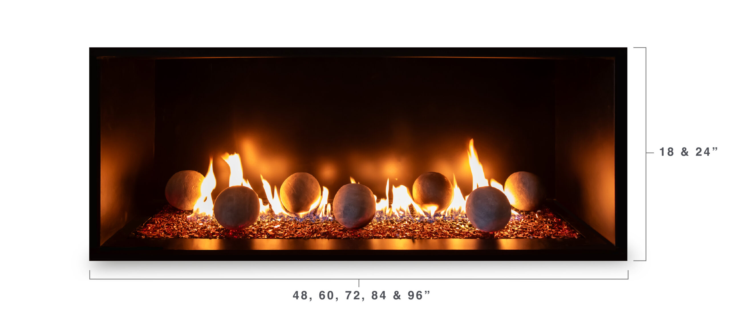 Choose from 48”, 60”, 72″, 84”, or 96” wide and 18” or 24” high*.